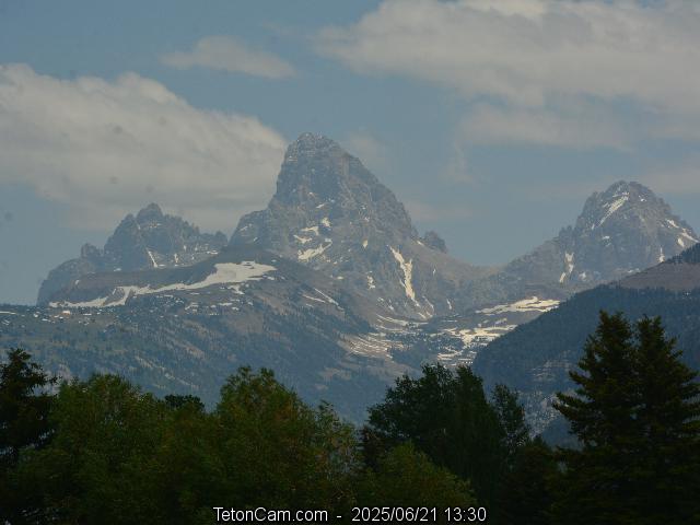 TetonCam is updated every 15 minutes during the day. To the left is the archived image taken on Saturday, June 21, 2025 at 1:30 PM. All images from that date are here.