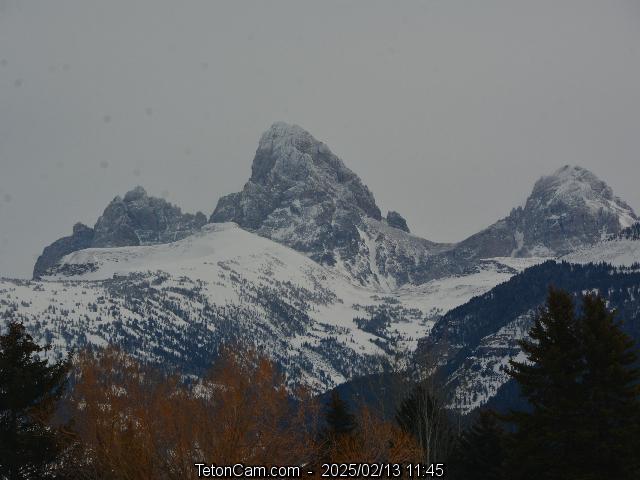 TetonCam is updated every 15 minutes during the day. To the left is the archived image taken on Thursday, February 13, 2025 at 11:45 AM. All images from that date are here.