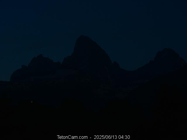 TetonCam is updated every 15 minutes during the day. To the left is the archived image taken on Friday, June 13, 2025 at 4:30 AM. All images from that date are here.