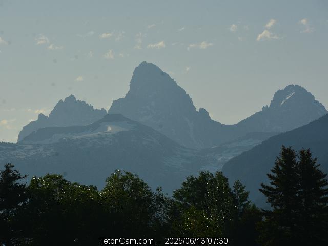 TetonCam is updated every 15 minutes during the day. To the left is the archived image taken on Friday, June 13, 2025 at 7:30 AM. All images from that date are here.