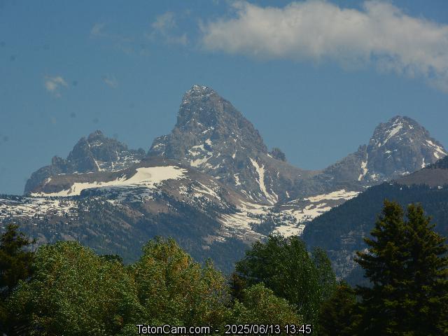 TetonCam is updated every 15 minutes during the day. To the left is the archived image taken on Friday, June 13, 2025 at 1:45 PM. All images from that date are here.