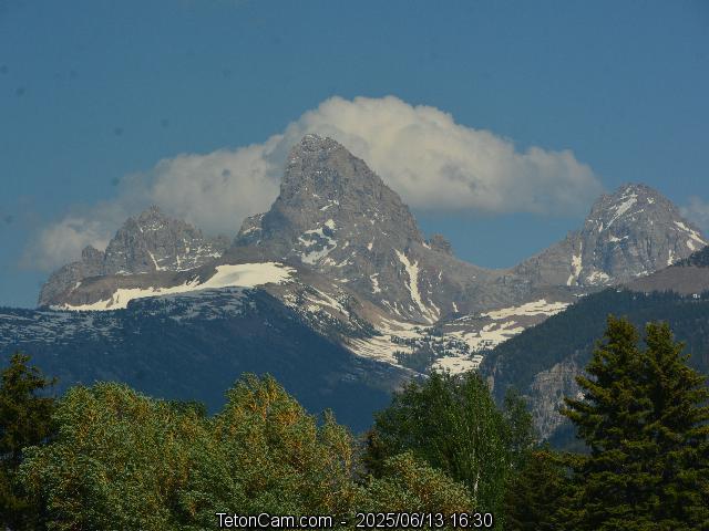 TetonCam is updated every 15 minutes during the day. To the left is the archived image taken on Friday, June 13, 2025 at 4:30 PM. All images from that date are here.